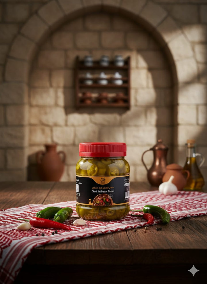 مع مخلل الفلفل الحار المقطّع، كل طبق يصبح أغنى، وكل لقمة تحكي عن خبرة المونة الفلسطينية وروح التحضير التقليدي.